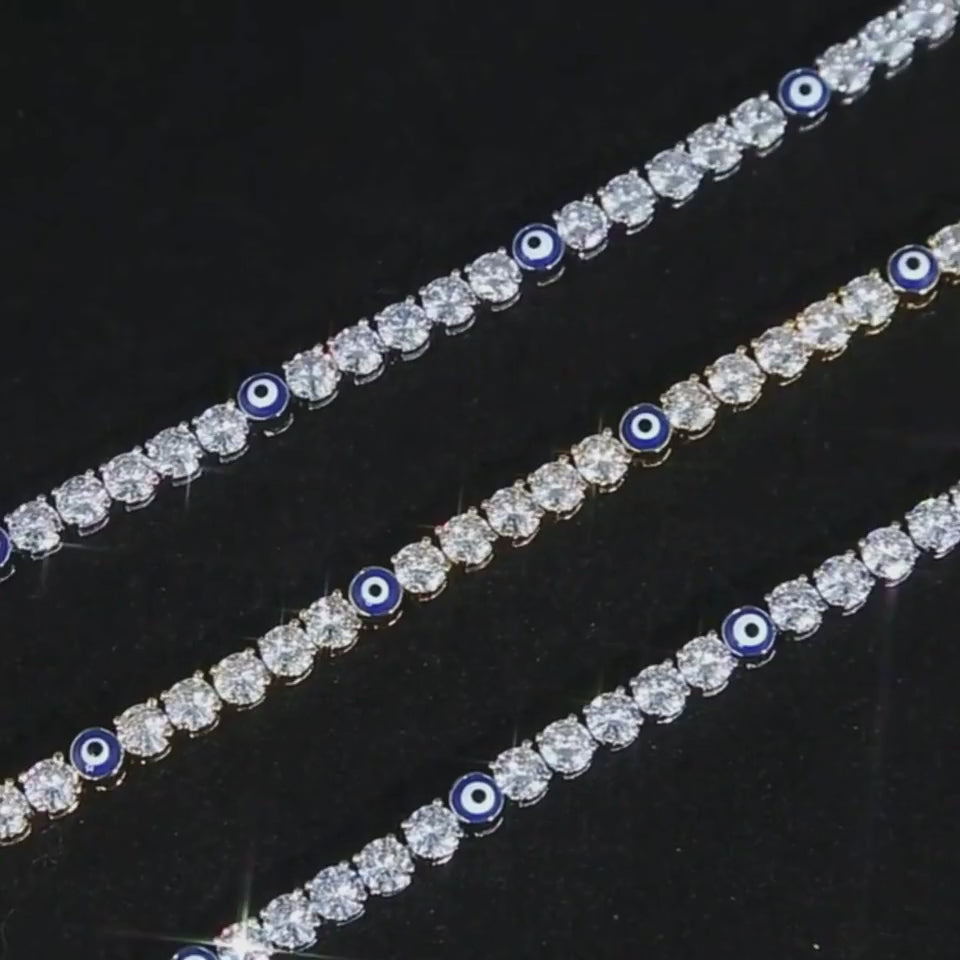 צמיד טניס עין כחולה - זהב לבן