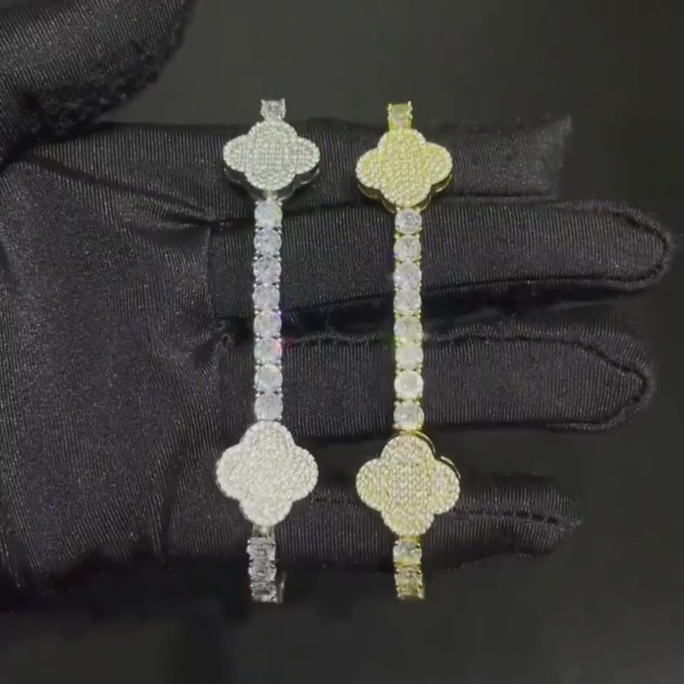 צמיד טניס תלתן משובץ - זהב לבן