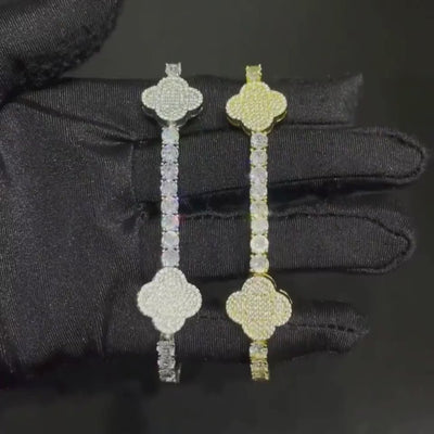 צמיד טניס תלתן משובץ - זהב 18 קראט